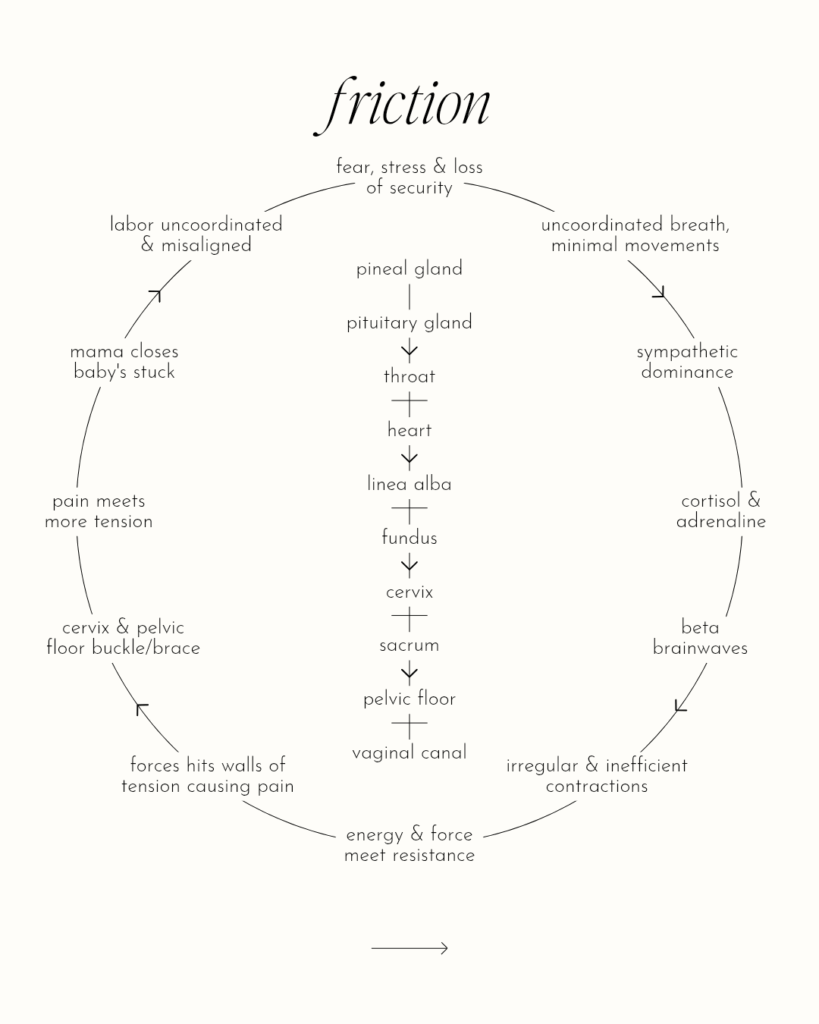 Fear in labor can ripple through all three dimensions—emotional, physiological, and mechanical—disrupting the body’s natural rhythm and initiating a cycle of friction in birth.